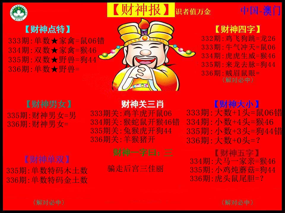 336期: 澳门六合彩彩圖信封【黄财神报】每期自动更新